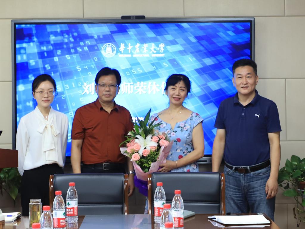 院长廖庆喜为刘青老师颁发荣休纪念证书和鲜花