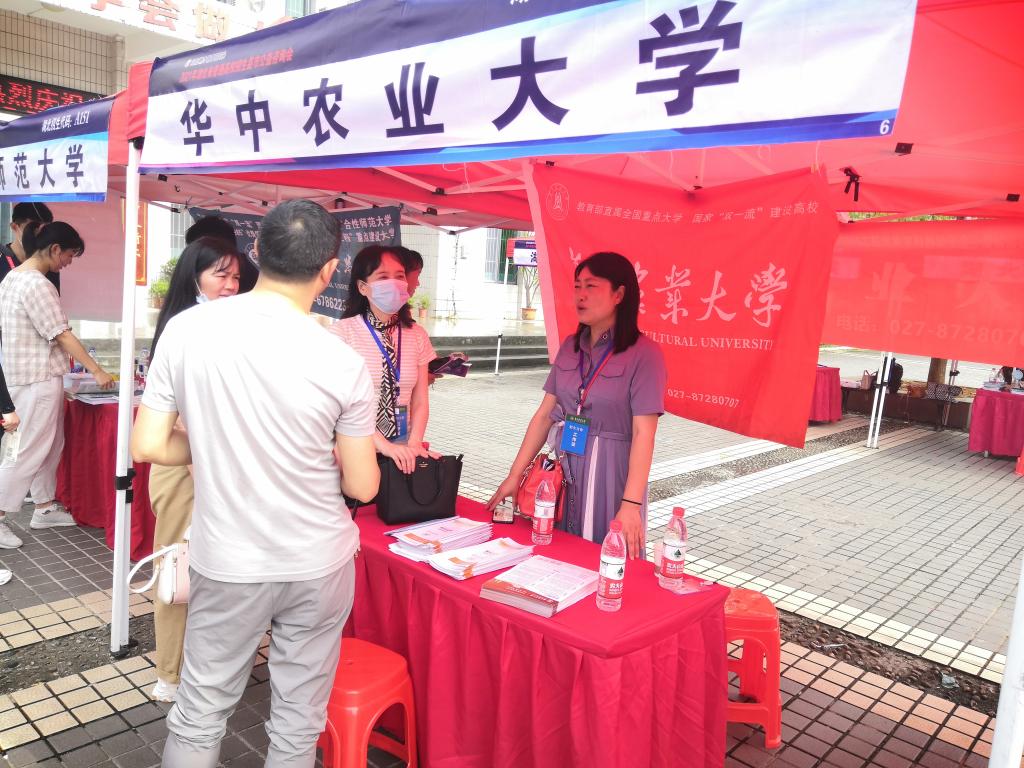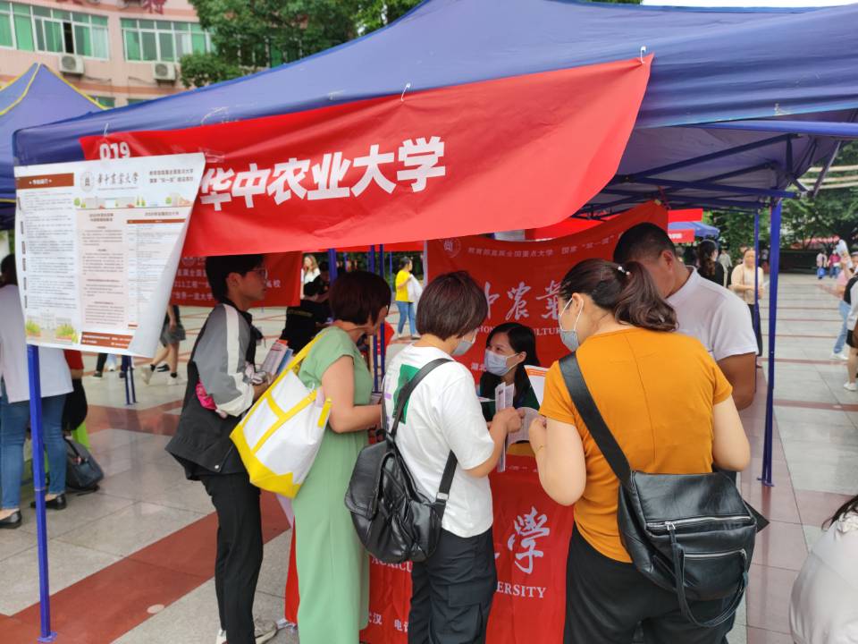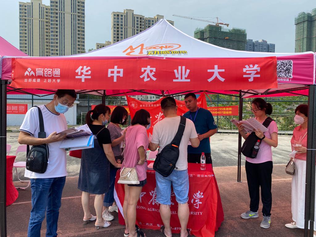 为保证咨询质量,闻玮玮教授在听取考生分数后预估报考我校成功的概率,然后再进行专业介绍和志愿填报指导,耐心地解答和讲解让考生和家长们在烈日下感到了阵阵清凉。来自鄂南高中的一位考生讲道:“分数出来之后,我一直在纠结报哪所大学,今天抱着看一看的心态来咨询,经过老师们的详细讲解,得知自己有大概率被“211”的华中农业大学录取后,让我悬着的心一下子放了下来,我一定将华农放在第一志愿填报!”