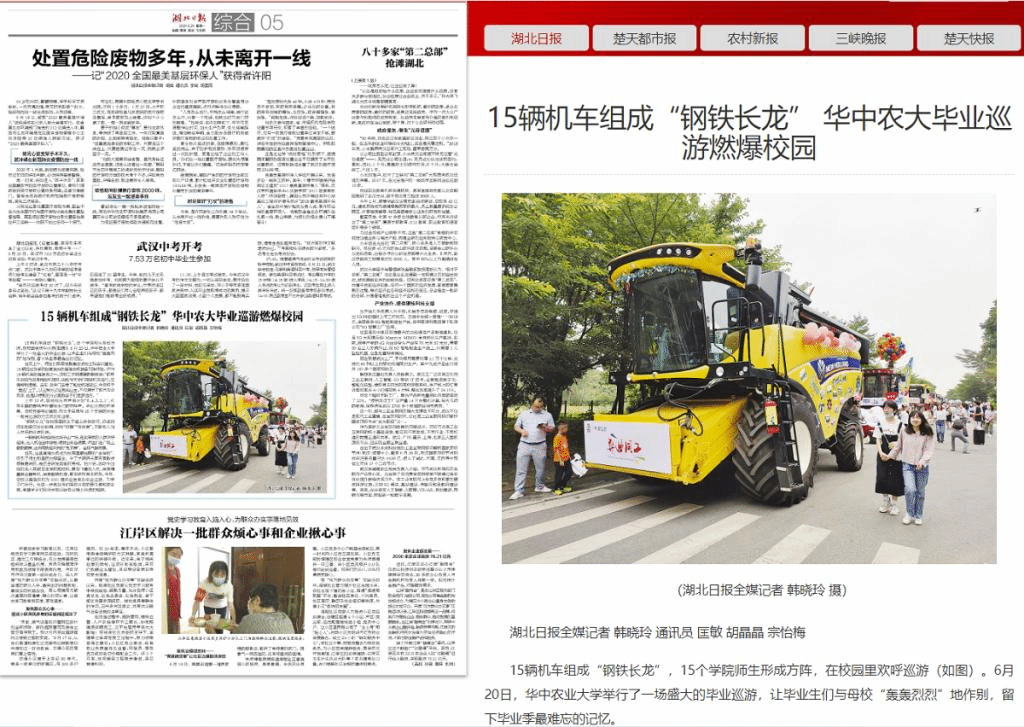 院长廖庆喜教授感触最深的,是自主研发装备的亮相。他介绍,活动中出现的无人驾驶自主导航拖拉机、景观飞播无人机、油菜精量联合播种机、油菜割晒机等,都由该校自主研发。今年,学校以高端农机为2021届毕业生举办毕业巡游,为学子们壮行,也进一步激发他们强农兴农的责任感和使命感,希望学子们用所学知识给农业插上科技的翅膀。