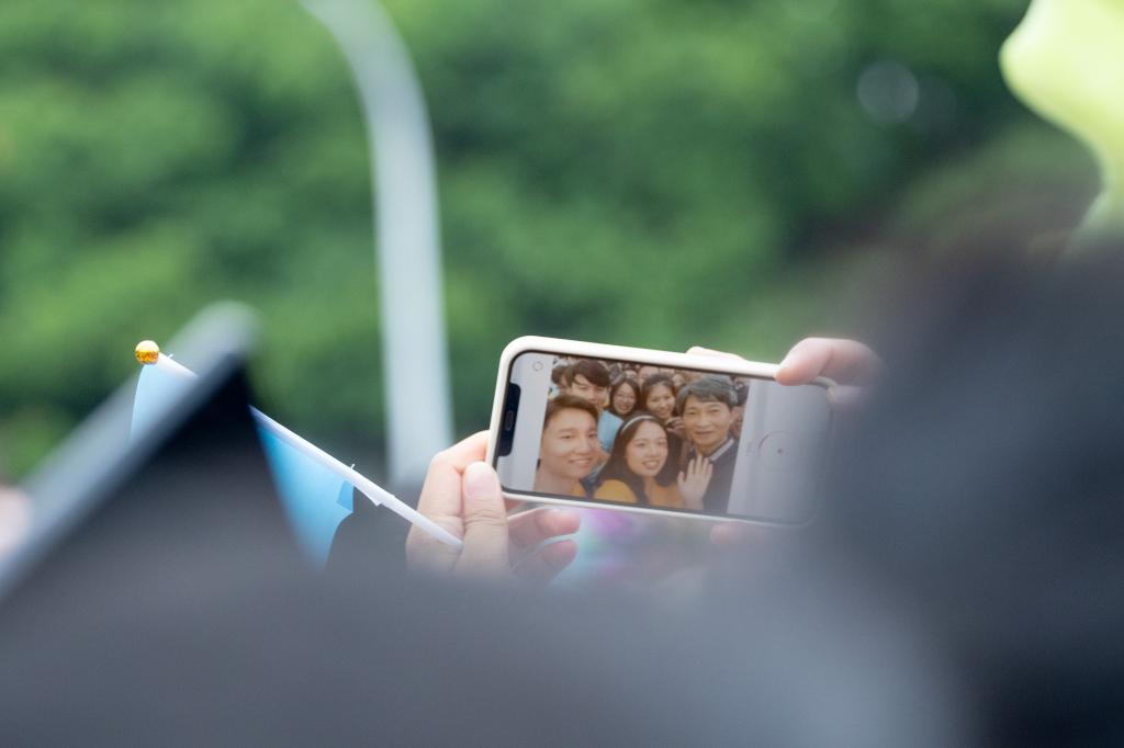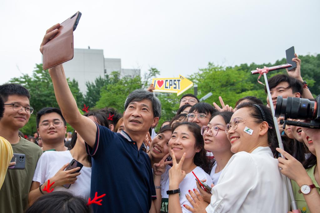 陈华锋老师被一波又一波同学邀请至机车前合影,他感慨说:“和同学们一起巡游,自己仿佛重新回到了大学时代。作为一名老师,以这种特别的方式为大家送别,既是对学子们学有所获的祝贺,也是对美好的青春岁月的致敬。”