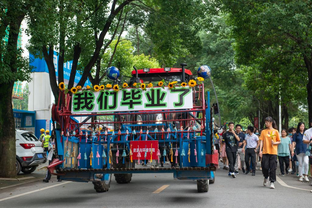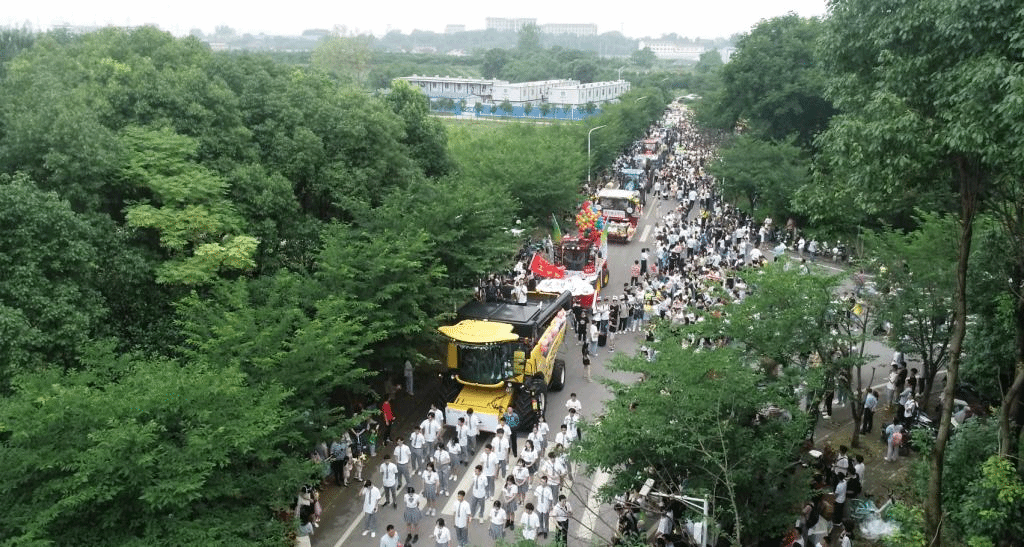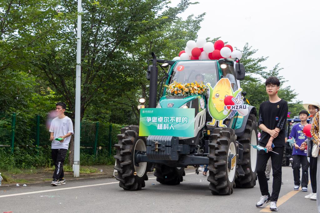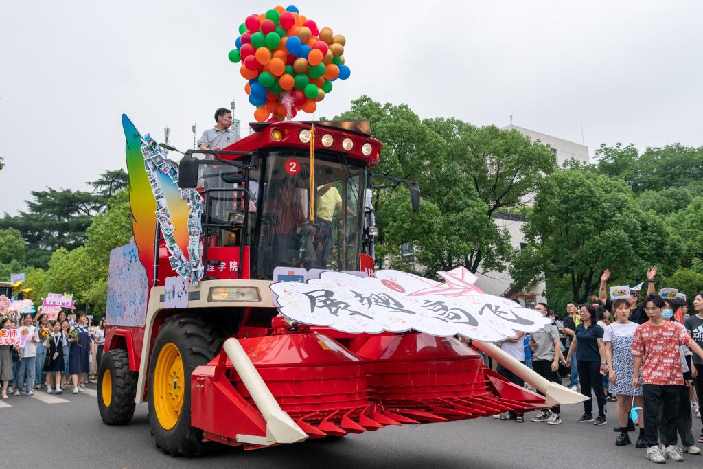 院长廖庆喜教授而言,置身于巡游队伍中,感触最深的,是一个个自主研发装备的“亮相”。“除了无人驾驶自主导航拖拉机,景观飞播无人机、油菜精量联合播种机和油菜收割机等3种机型也由学校自主研发。无人机寓意广大学子们展翅高飞,飞向更加精彩的人生;播种机寓意奔赴祖国各地的华农学子如播下的种子茁壮成长,在祖国需要的地方建功立业。收获机则寓意学子们在人生新的征程中一分耕耘一分收获。”廖庆喜说,“今年,学校以现代农机装备为2021届毕业生举办毕业巡游活动,这对农业高校学子而言,也是一次实践教育课。希望以这种形式,为学子们开启新征程壮行,也进一步激发同学们强农兴农的责任感和使命感。”