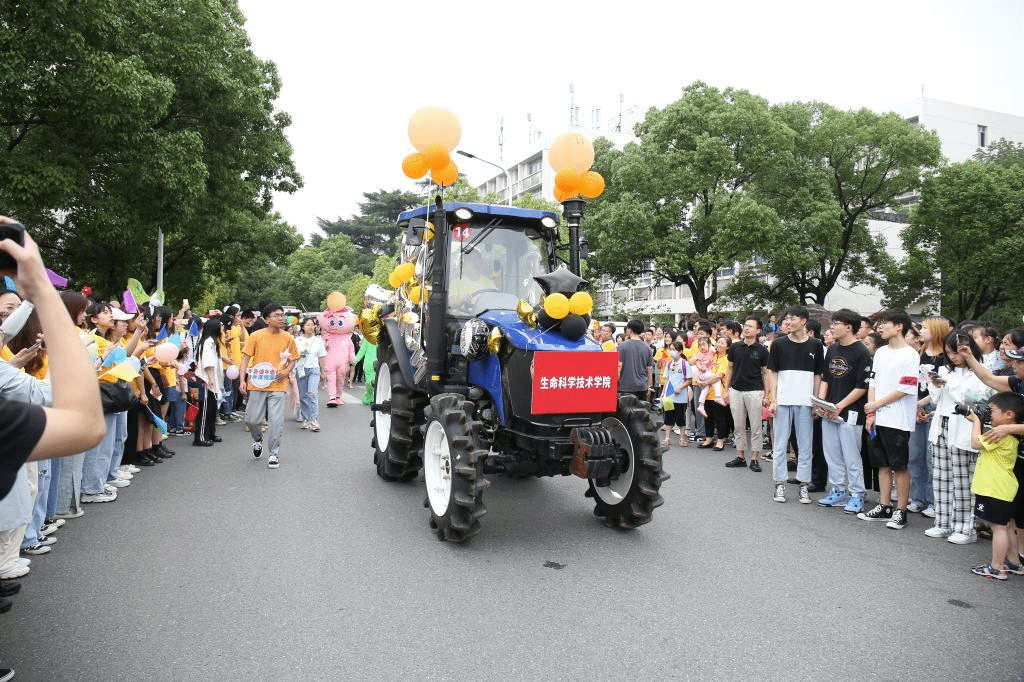一路上,师生们身着盛装,头戴各具特色的装饰物,脸上还用油彩画着“勤读力耕,立己达人”“我爱华农”等图案,他们或随着音乐节拍舞动,或跟随车队挥手向前。