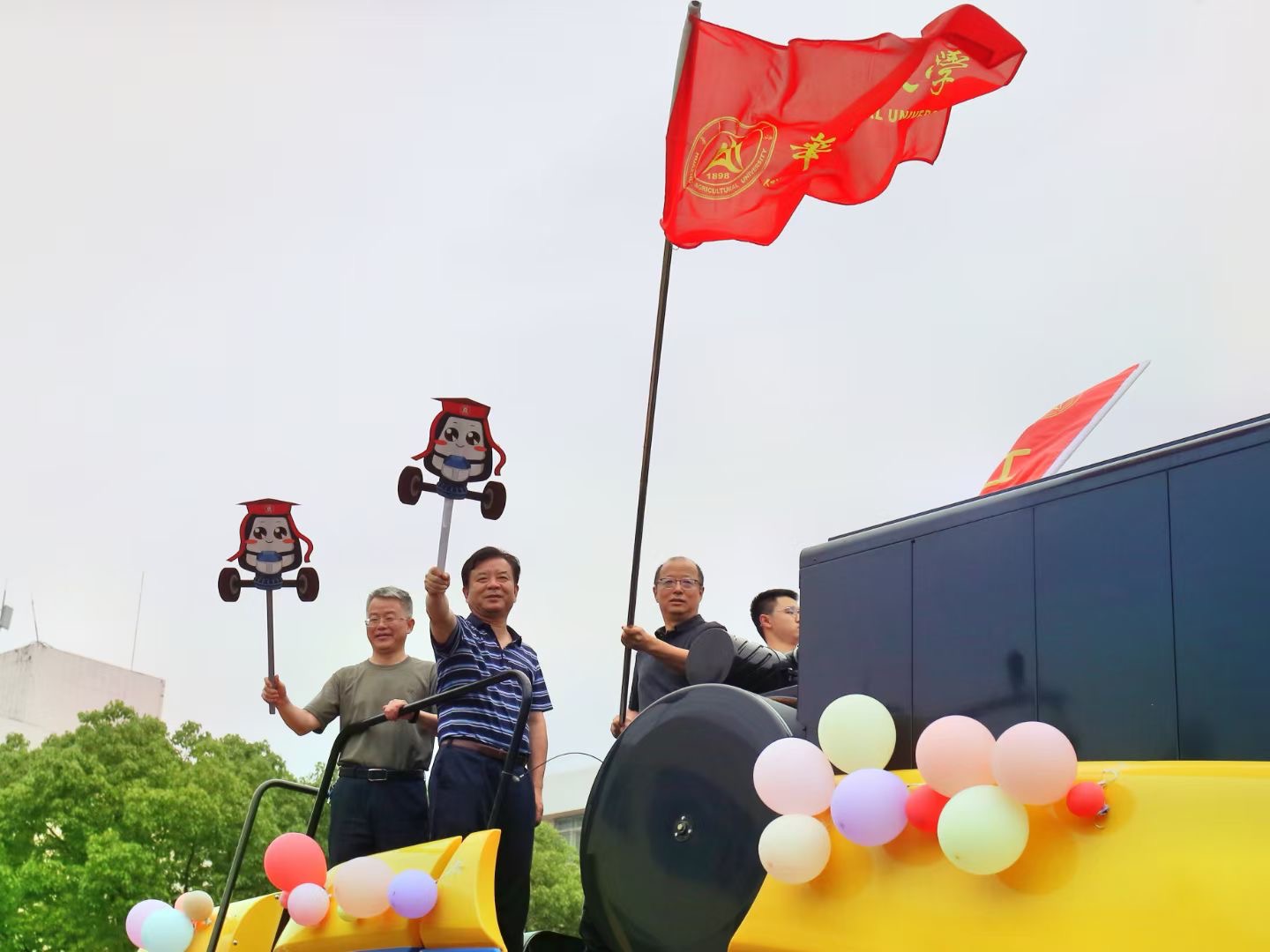 毕业生们伴随歌声踏着轻快的舞步出发,纽荷兰CX6.80联合收割机“大黄蜂”紧随其后,机车上,校长李召虎挥舞着校旗,不时与巡游的师生们热情互动。偌大的机身上,张贴了象征工业发展的锤子、扳手、螺母等图案,寓意华农学子不断发扬大国工匠精神,心系天下、勇于挑战,在科技创新领域中建功立业。理篮球比分雷速