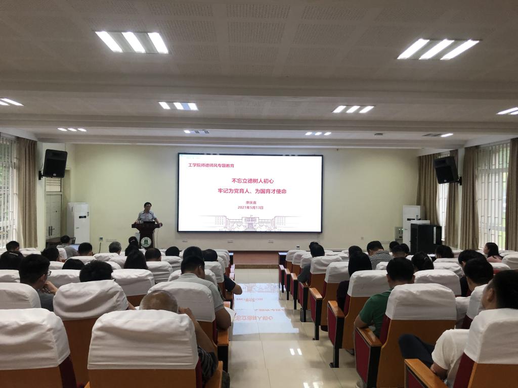 在工程楼A111报告厅召开师德师风专题教育会议,院长廖庆喜作了“不忘立德树人初心 牢记为党育人、为国育才使命”专题报告,篮球比分雷速