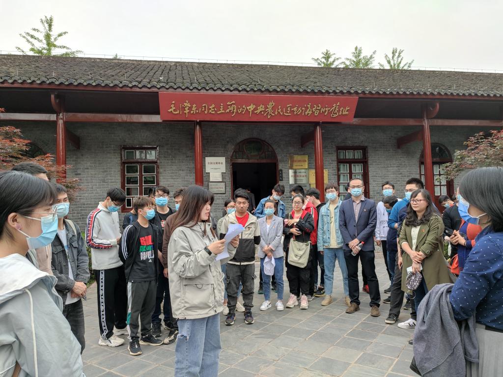 在农民运动讲习所门前,2020级硕士陈学玉同志在开展微党课时谈到,“当年举办农民讲习所是为中国革命培养人才,推翻封建势力,而如今的大学是为了培养德智体美劳全面发展的社会主义建设者和接班人,我们要努力刻苦学习,提高本领,以聪明才智贡献国家。”