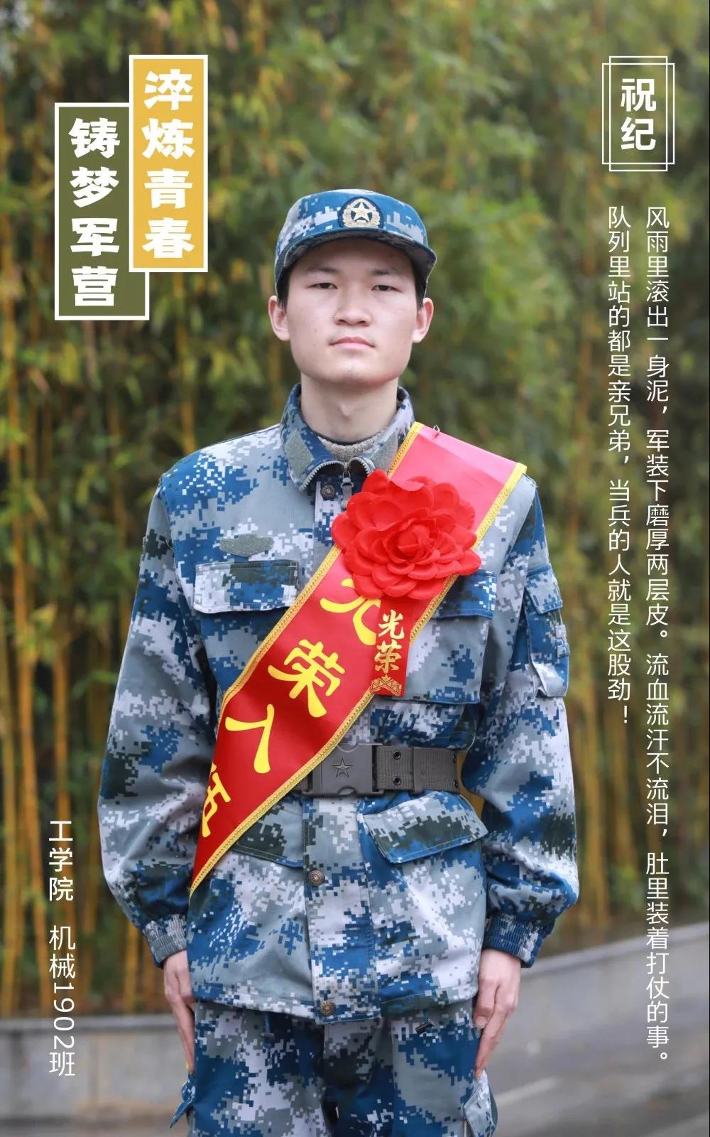 参军是一种选择,也是一种动力。祝纪说:“我从小便对军人充满向往,家里人都希望我能够有所作为,于是我发奋学习,才能够进入华中农业大学深造,大学生从军的相关政策让我意识到学习参军可以互不耽误,我十分希望人生中能有这样一段军旅经历,家里也全力支持,学校也非常重视。都说一人从军全家光荣,不当兵后悔一辈子。十分感谢学校给我这次机会让我能够去部队锻炼自己,到部队后我一定刻苦训练努力学习遵守纪律服从领导团结同志,绝不辜负学校和家人的期望。”