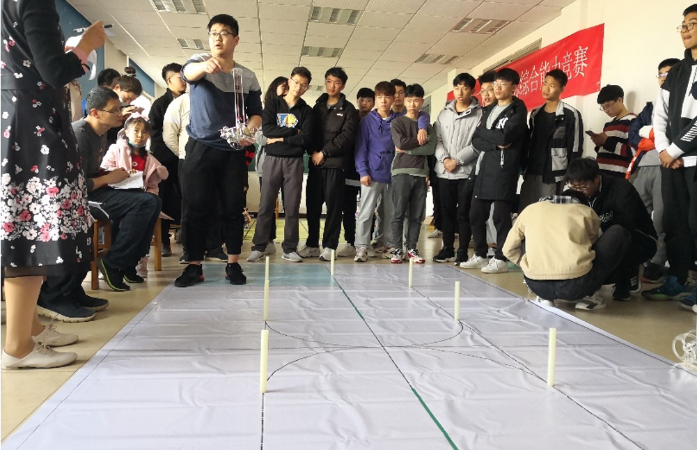 省赛评审专家李旭荣副教授主持了开赛仪式,李老师谈到,工程训练大赛涵盖了工程制图、机械原理、机电控制基础多门专业课程以及结构设计、加工制造、装配调试等实践操作流程。比赛的最终目的是为了促进大家运用所学知识,提高动手实践的能力。评委老师对所有参赛作品进行了点评,并对参赛队伍进行了指导。