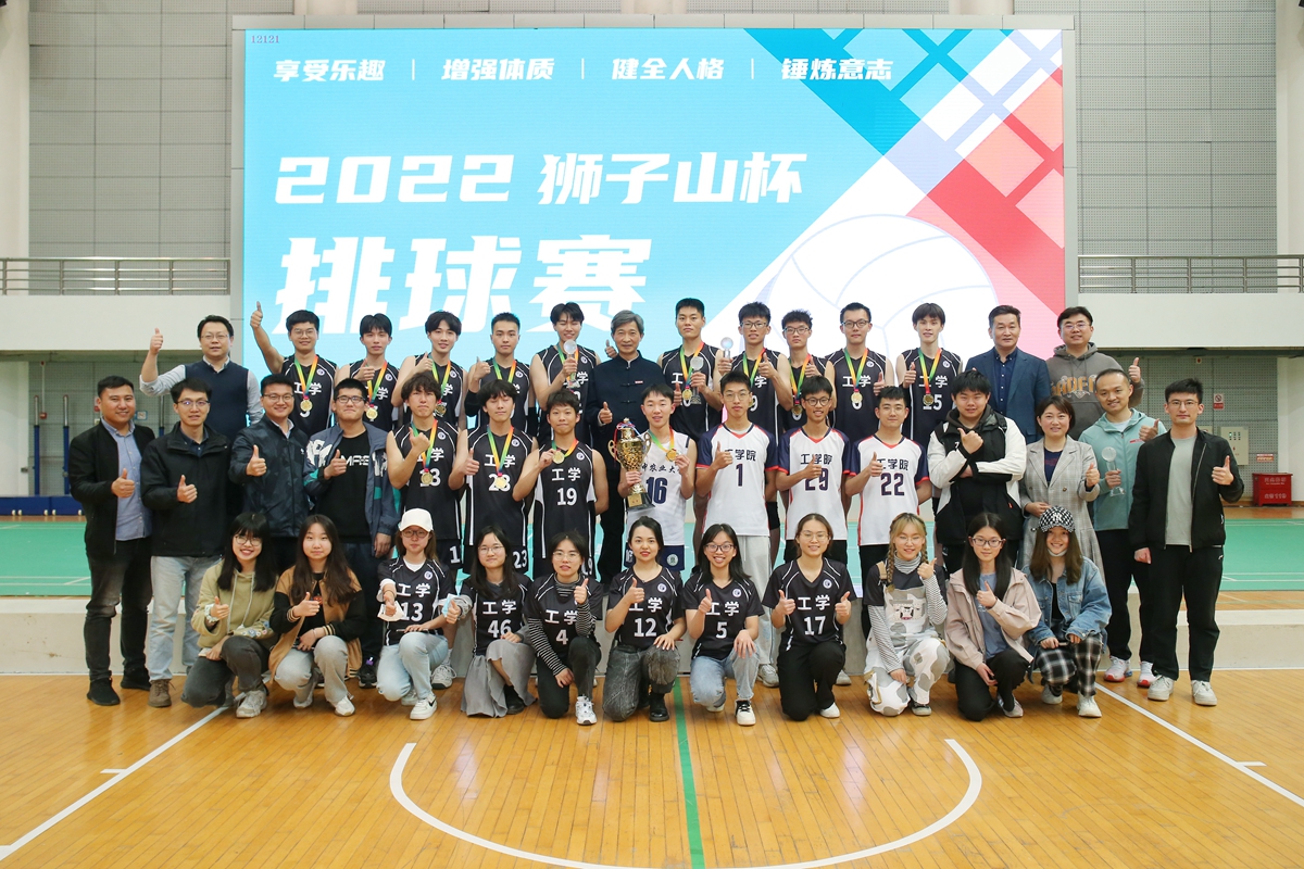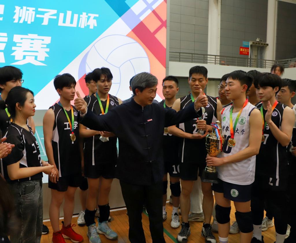 在颁奖典礼上,全场的嘉宾、观众以及工作人员都为工学男排欢呼,校党委书记高翅老师亲自为获胜的队伍颁发了奖杯与奖牌,并与篮球比分雷速