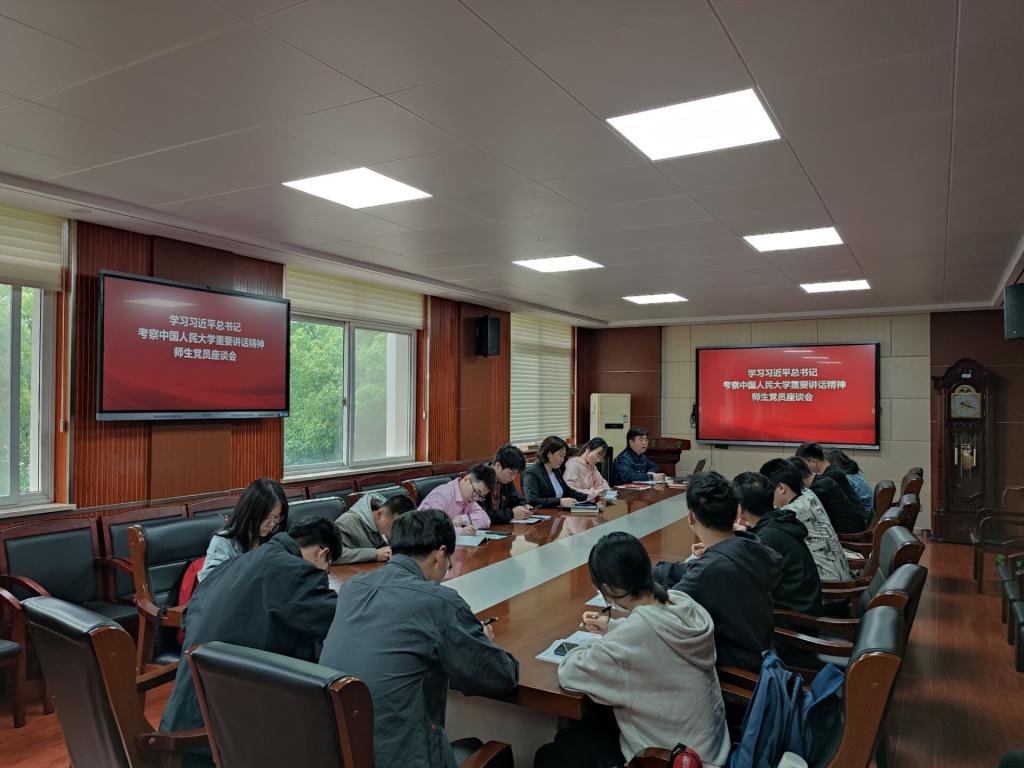 大学生党总支在工程楼A201会议室举行学习习近平总书记考察中国人民大学重要讲话精神师生座谈会,瞿明丽和本科生、研究生党支部支委在座谈会上交流学习心得体会、畅谈未来期许。