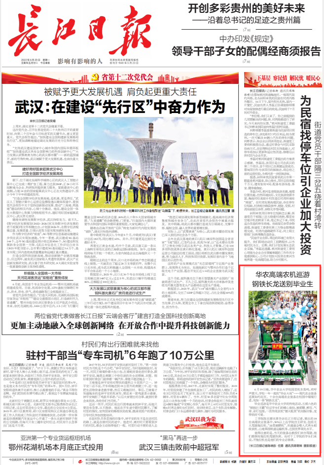 6月19日晚,华中农业大学校园里机车轰鸣,欢呼声震天,学校一年一度的“毕业大戏”——现代农业装备巡展如约而至。十余台高端农业装备在校园中缓缓行进,宛如一条“钢铁长龙”。