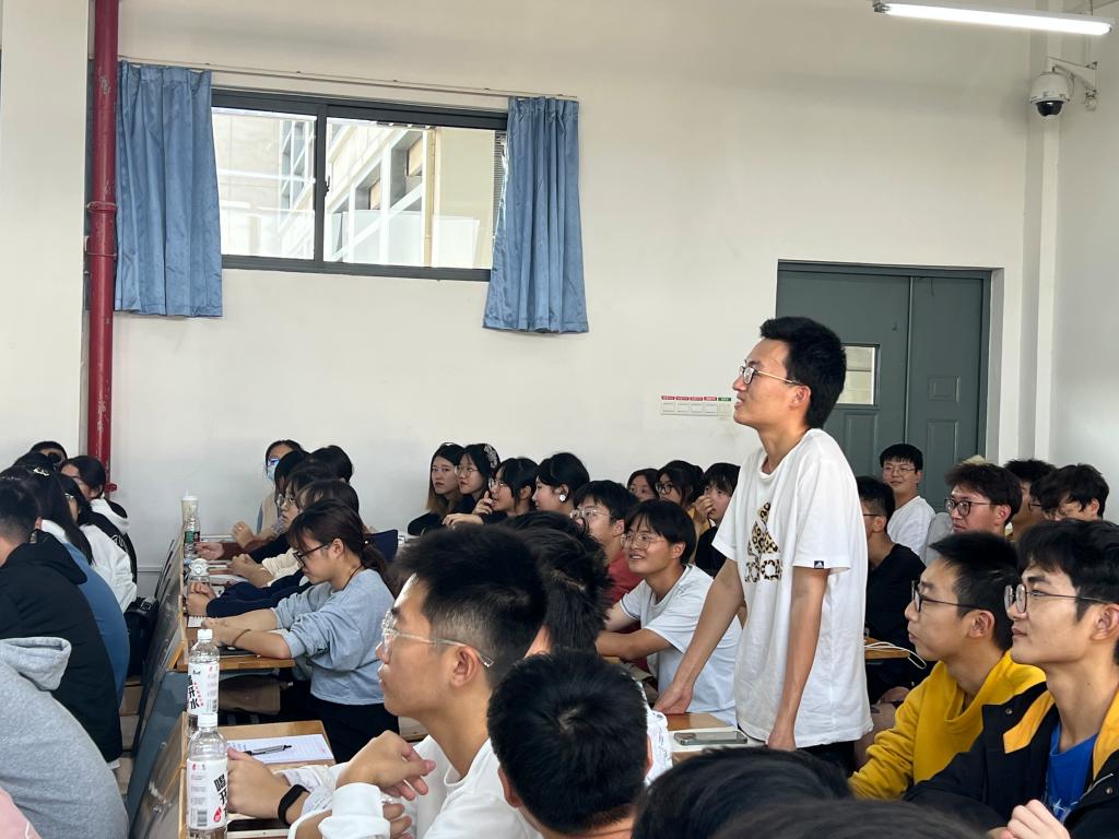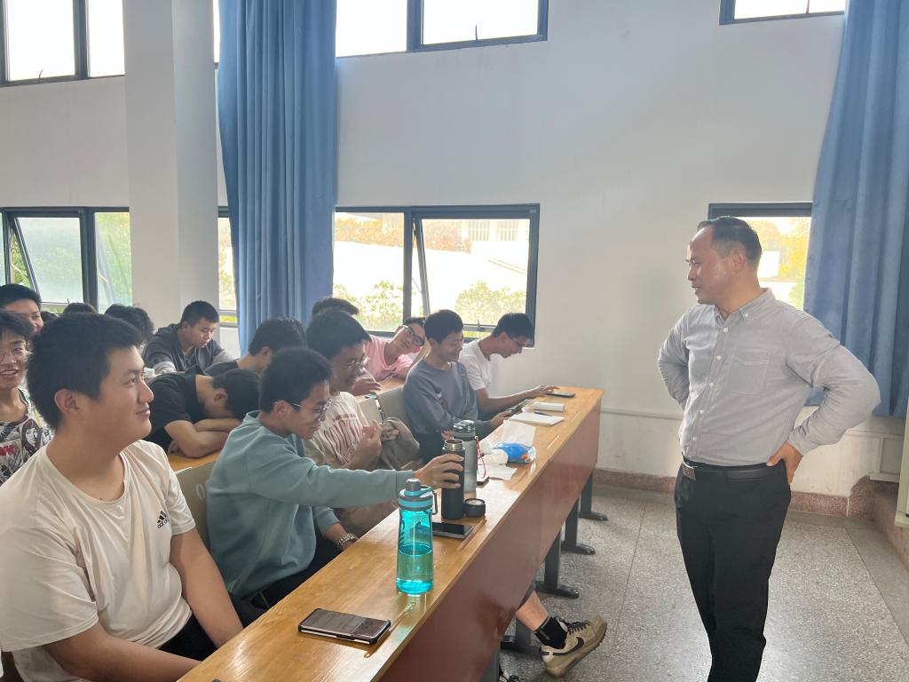 距离上课还有15分钟时,王建鸿老师便到达教室,与同学们亲切交流。“同学们,开学两个月了,在华农学习、生活得如何?吃住是否还习惯?”他悉心询问着新生来校后的适应情况,与同学们交谈甚欢。