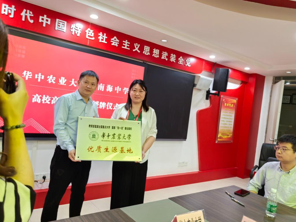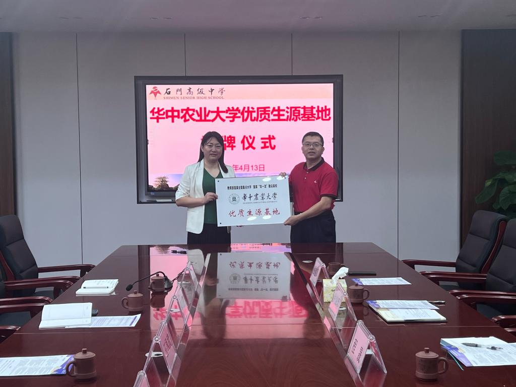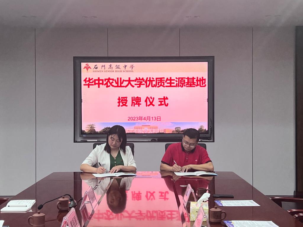在石门高级中学授牌签约仪式上,校副书记、副校长钟海明代表中学对我校的到来表示欢迎。座谈会上,他详细介绍了学校的办学历史、学生培养、师资力量和教学情况。他谈到,希望通过优质生源基地加强两校合作,共同做好优质生源的推荐和培养工作。