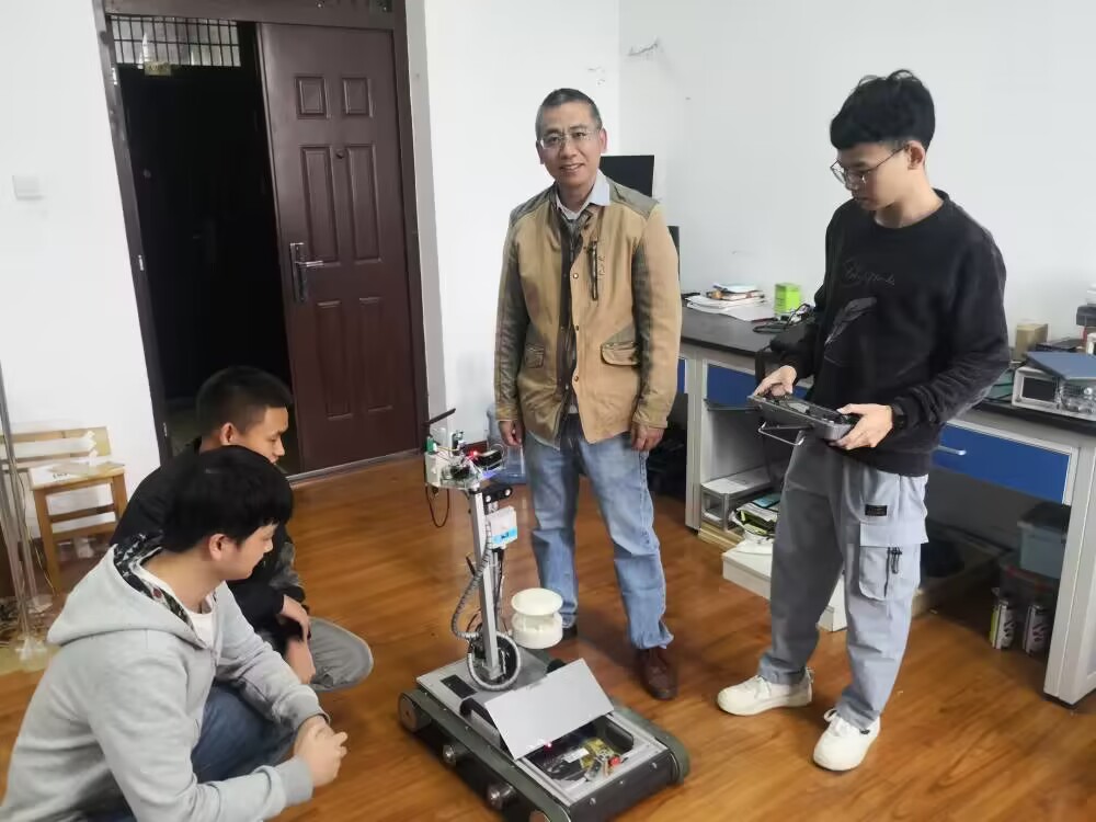 对于工科学生,科技创新是学生培育创新意识,培养创新素养的重要平台。自2017年至今,龙长江便加入了机器人实验室,并担任学生指导教师。在机器人实验室内,龙长江老师注重每一位学生的成长,从日常培训、技能指导、科研竞赛等各个方面对学生无微不至的关怀和指导。在学生培训中,他注意收集网络资源和以往比赛案例,将核心内容按照难易程度排序以供学生循序渐进学习,并且将以前优秀的SRF、省创和国创项目作品让学生复现,通过比较分析差异点,体会实际项目中需要考虑的技术细节。同时,他让本科生参与到研究生的科研活动,辅助研究生进行装置设计和测试实验,提早让学生进入科研角色。
