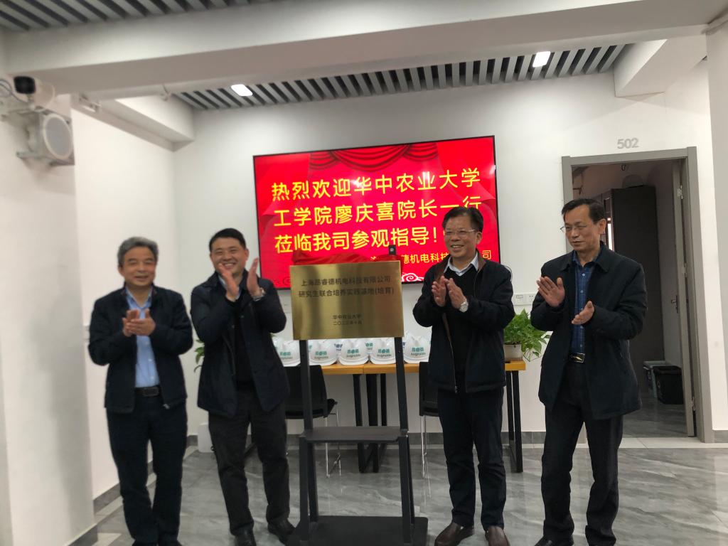 牛智有教授、谭鹤群教授等教师随行。上海昂睿德机电科技有限公司总裁周海山等热情接待了廖庆喜一行,并组织企业主要管理人员和技术研发人员与廖庆喜一行开展座谈交流和生产现场参观。