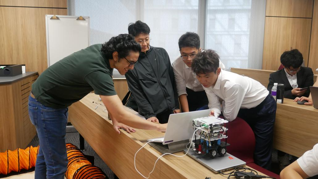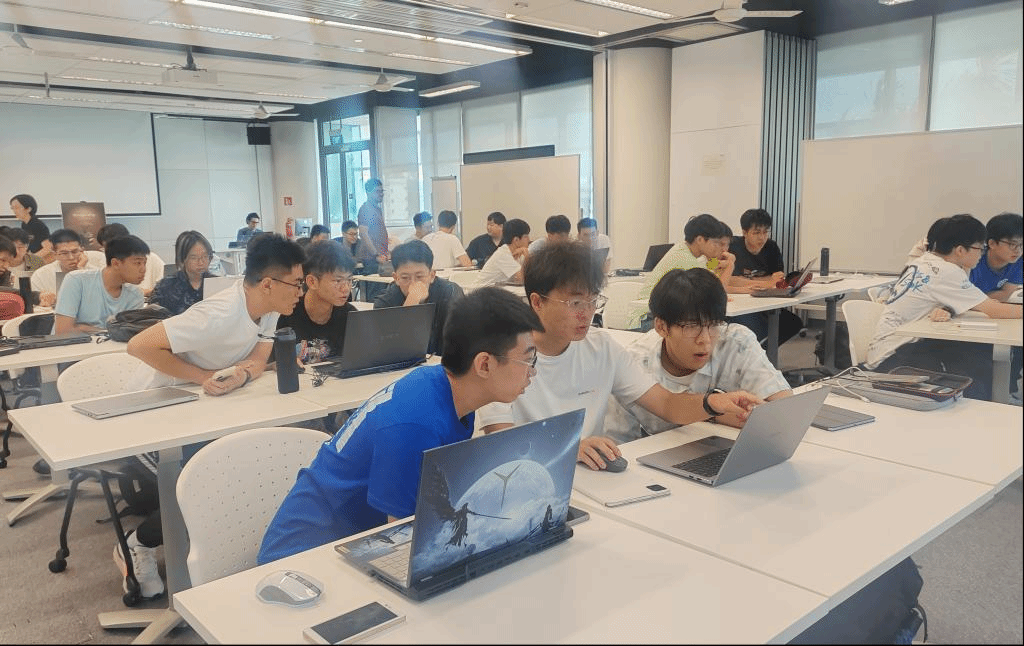 除了丰富的理论课程,实践环节同样精彩纷呈。由新加坡科技设计大学的Mohan Rajesh Elara 教授带来的“集成电路变为现实:机器人应用”课程,让同学们兴奋不已。在这个课程中,同学们分组合作,动手操作编程代码,努力让机器人穿越迷宫。