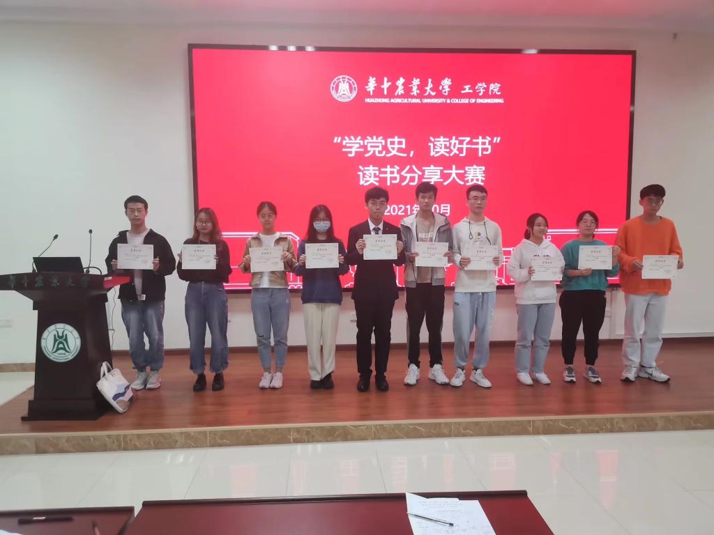 在工程楼A111报告厅举行“学党史,读好书”读书分享大赛,经过自主报名、班级筛选等环节,最终10位同学以党史相关书籍为媒介,分享读书心得,致敬建党百年光辉历程。