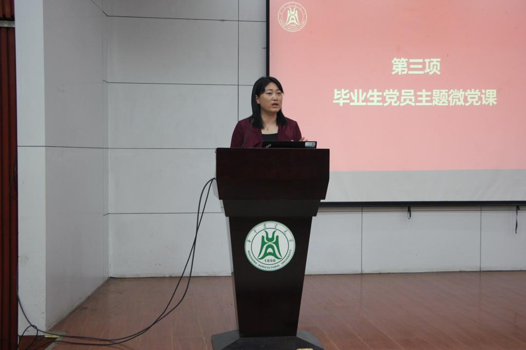 党委副书记瞿明丽为本研毕业生党员带来题为《学党史 明方向 踏征程》的主题党课。