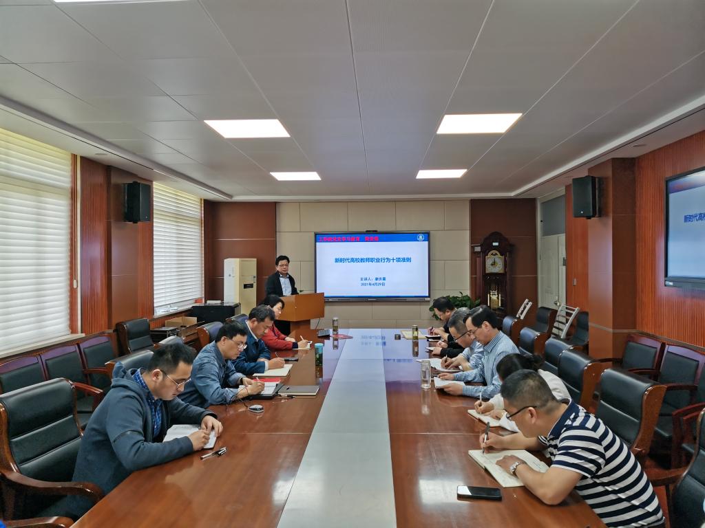 在工程楼A201会议室举行党史学习教育活动,院长廖庆喜教授讲授了《新时代高校教师职业行为十项准则》专题党课。篮球比分雷速