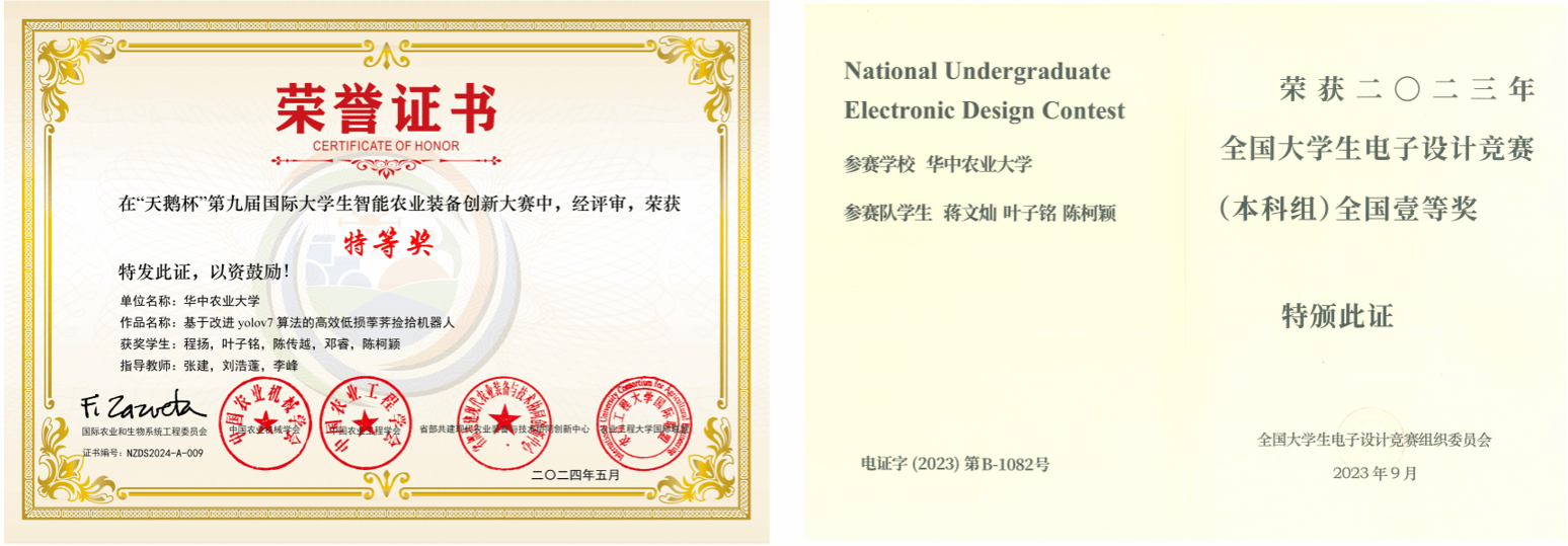 2024年,在全国智能农机装备大赛中,获国家特等奖1项、一等奖3项、二等奖3项;在“挑战杯”、中国国际大学生创新大赛中,均获湖北省金奖;在第十一届中国青年创青春大赛中,获国家金奖,取得篮球比分雷速