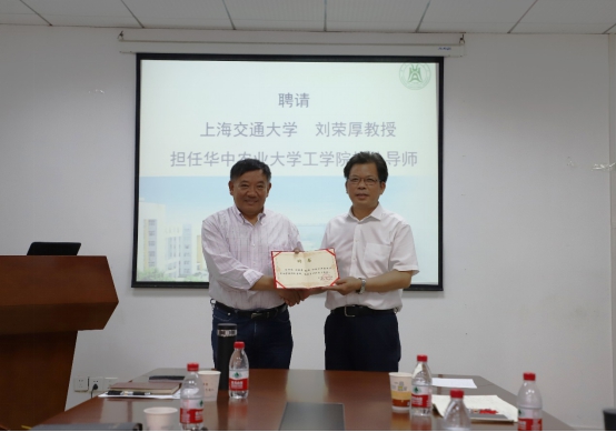 聘请刘荣厚教授作为能动专业校外导师,由廖庆喜院长向刘荣厚教授颁发了校外导师聘书。