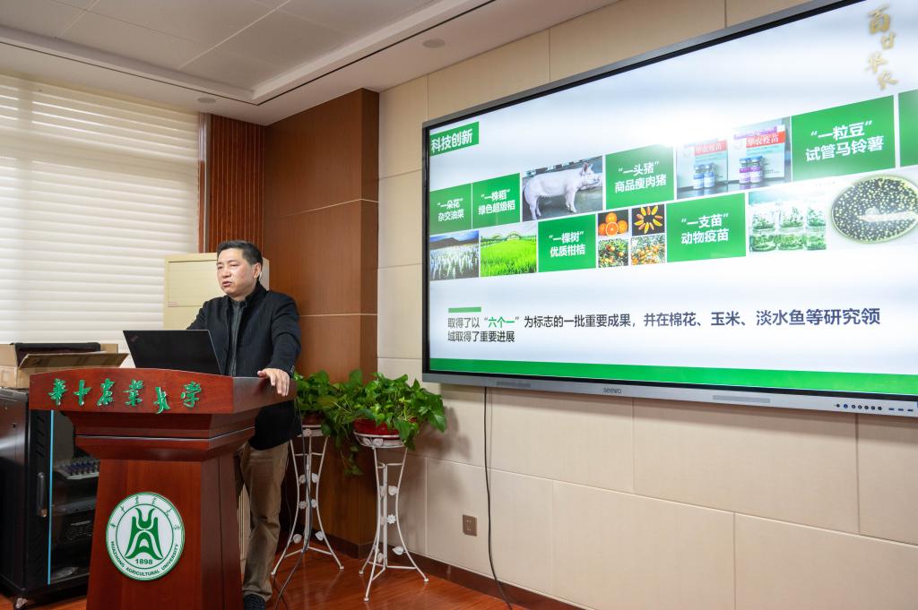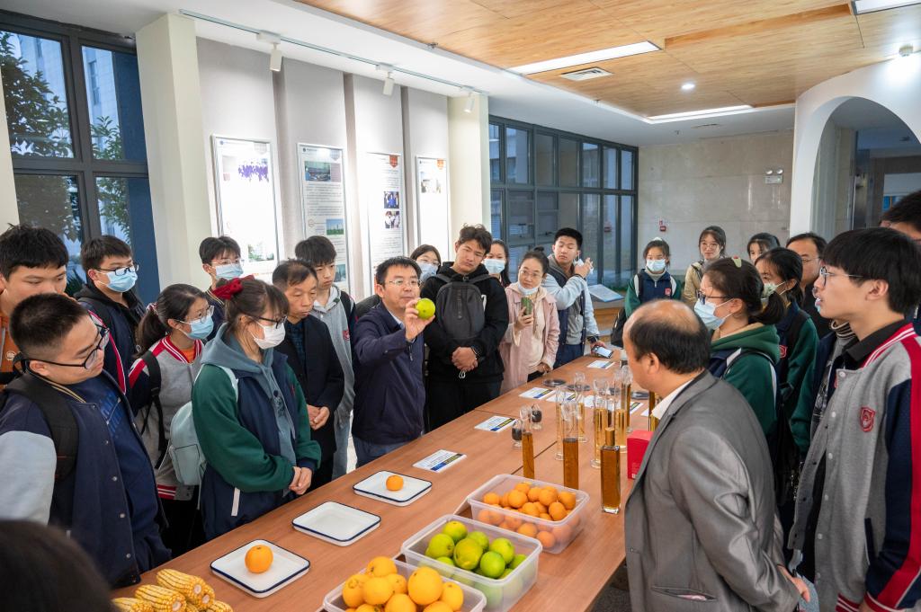 在作物遗传改良国家重点实验室,副校长严建兵教授亲自为崇阳一中的师生们进行讲解。严校长详细介绍了实验室的组成、主攻方向、科研成果与转化等情况。他通过国内粮食需求量与我国的粮食产量数据对比,鼓励同学们要树立科技自立自强的思想,“只有研发属于自己的科技产品才不会受制于他人”。