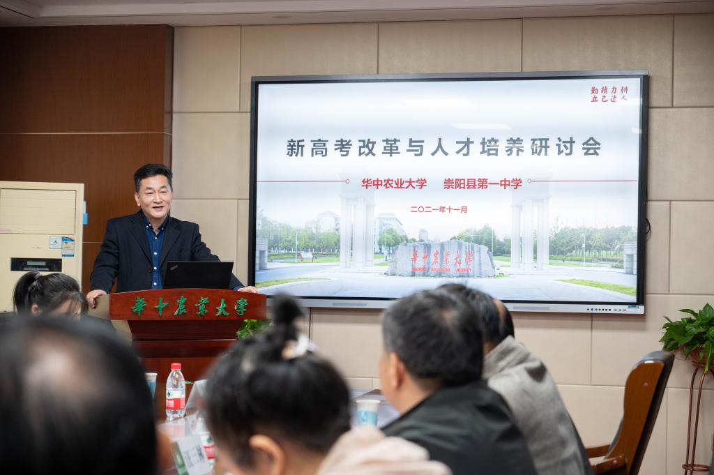 华中农业大学招生就业处处长杨道兵围绕我校的办学规模、学科特色、师资队伍和人才培养等做了全面的介绍,并对新高考政策进行了解读。他根据今年学生报考以及各高校专业录取情况,对高中生在选考科目等方面给出了自己的意见。杨道兵讲道:“新高考改革给了学生更多的选择空间,但要根据社会发展方向和个人兴趣特长选择合适的科目。”