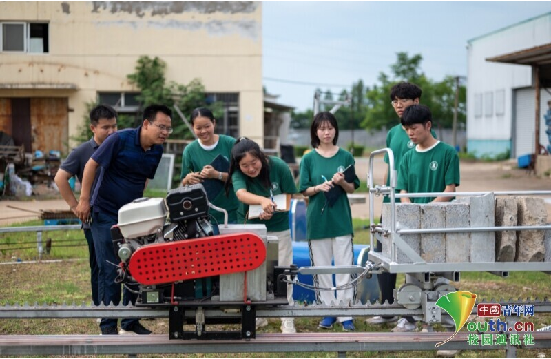 李善军老师在给团队成员讲解全液压动力地盘。中国青年网通讯员 程扬 摄