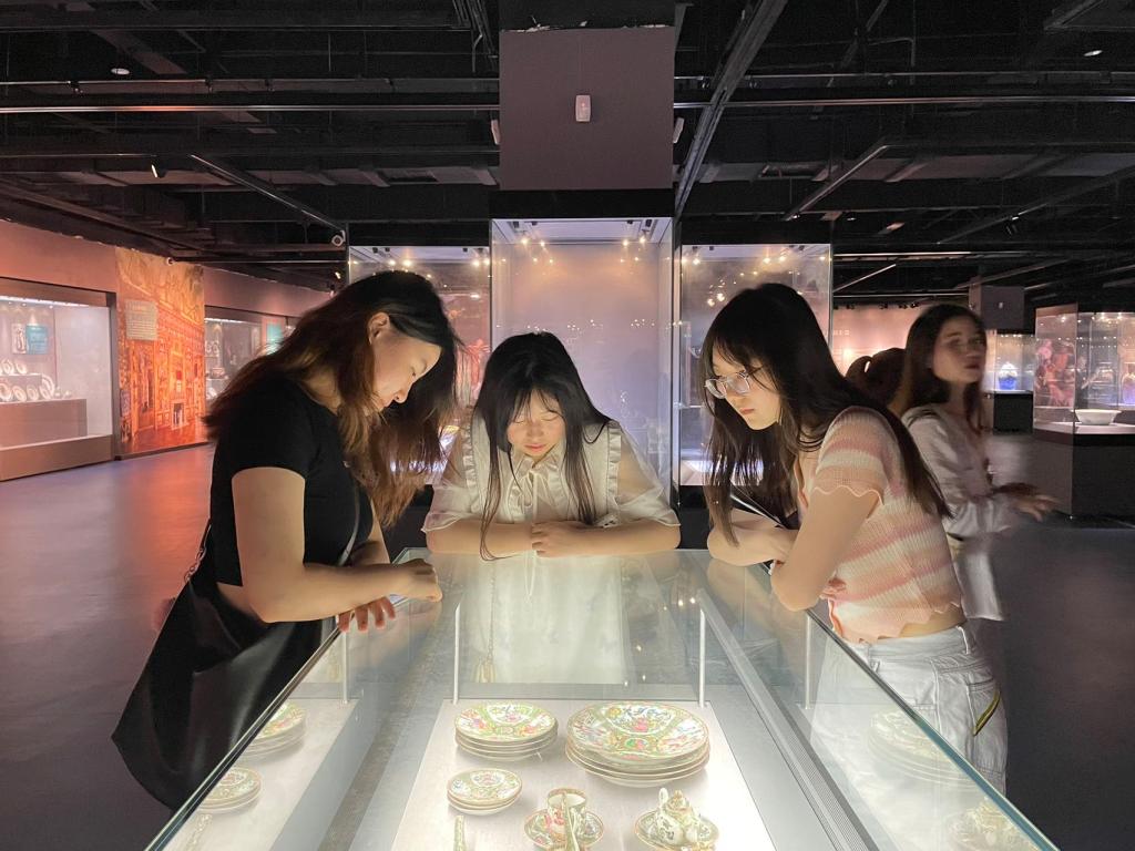 在景德镇御窑景区,实践队员们切实感受到了中国古代瓷器艺术的博大精深,领略到瓷器作为传统工艺品的瑰丽魅力,同时也欣赏了传统文化与现代社会的融合之美。其馆藏非常丰富,展示了各个时期的大量御窑瓷器,包括明代的景德镇青花、明代宣德、成化、嘉靖等系列,以及清代康熙、雍正、乾隆等系列,还有世界各地的瓷器艺术品,以及相关的历史文物和艺术品。这些展品不仅展示了不同时期和地区的瓷器特色,还展示了中国瓷器文化与世界文明的交流和融合。走进这座博物馆,队员们充分感受到了陶瓷文化的博大精深,并在现代设计的氛围中领略到中国传统文化的千年魅力。